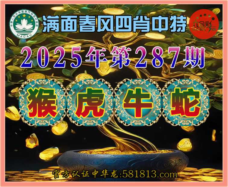 287期:【满面春风】 😍四肖中特😍【猴.虎.牛.蛇】开:00准