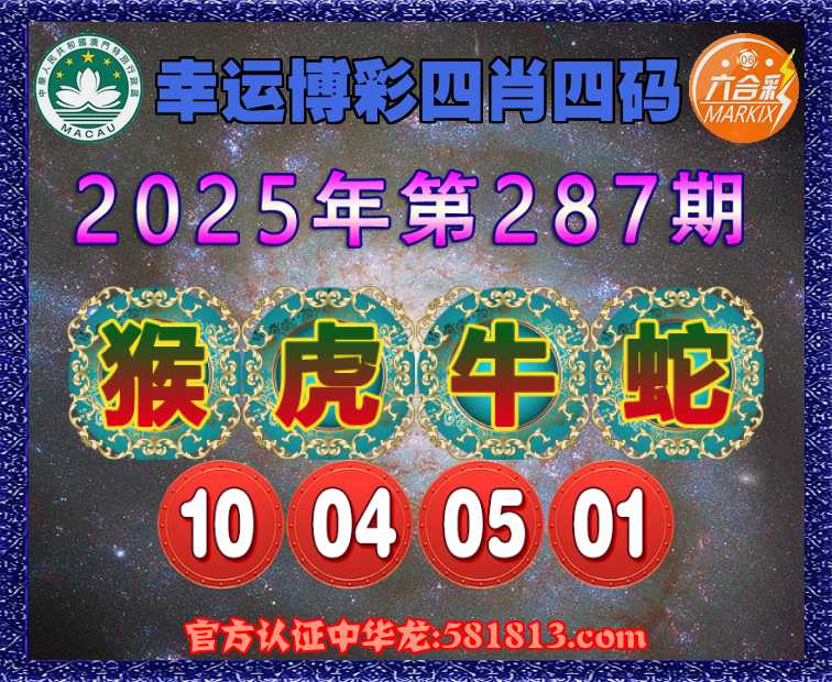 287期:〖幸运博彩〗 🏇四肖四码🏇【猴虎牛蛇】【10.04.05.01】开:00准