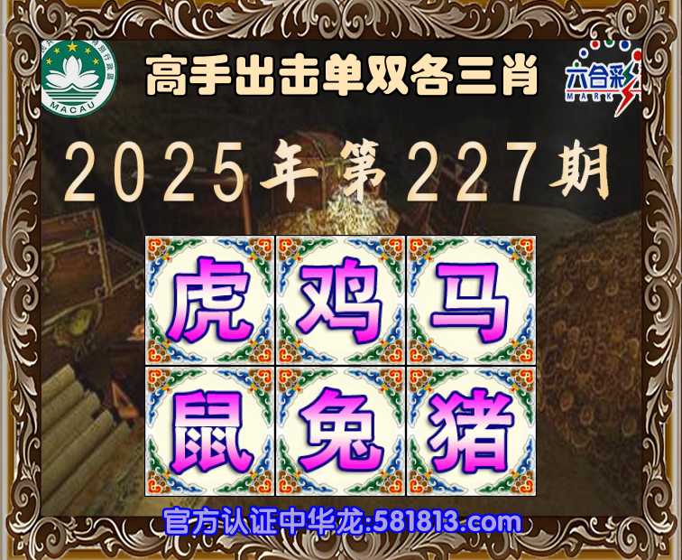 227期:【高手出击】 🥽单双各三肖🥽【虎.鸡.马.鼠.兔.猪】开:虎40准上榜认证