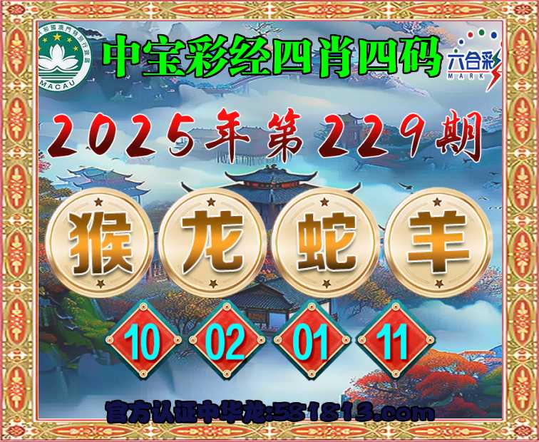 229期:《中宝彩经》 🏵️四肖四码🏵️【猴龙蛇羊】【10.02.01.11】开:龙02准上榜认证