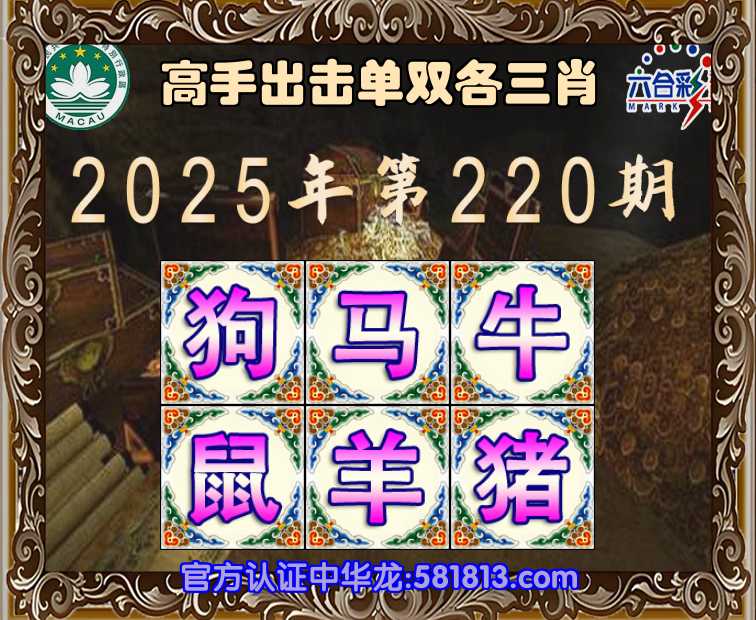 220期:【高手出击】 🥽单双各三肖🥽【狗.马.牛.鼠.羊.猪】开:狗08准上榜认证