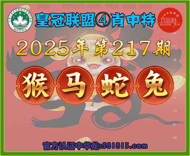 217期:〖皇冠联盟〗 ✂️④肖中特✂️【猴.马.蛇.兔】开:猴46准上榜认证