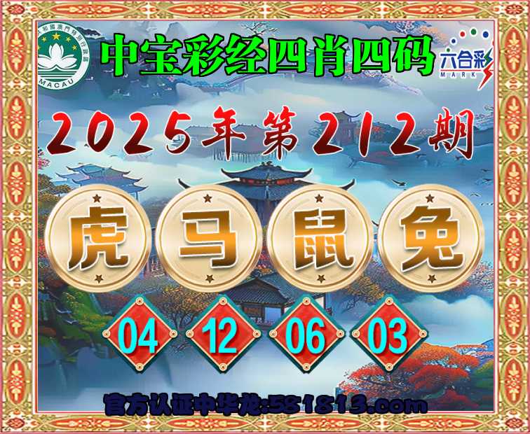 212期:《中宝彩经》 🏵️四肖四码🏵️【虎马鼠兔】【04.12.06.03】开:鼠18准上榜认证