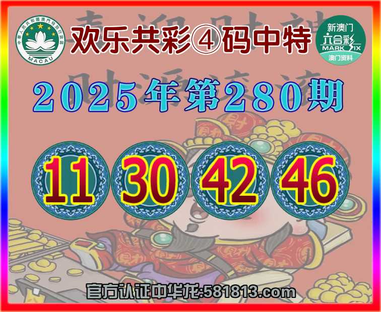 280期:【欢乐共彩】 🧧④码中特🧧【11.30.42.46】开:42准上榜认证