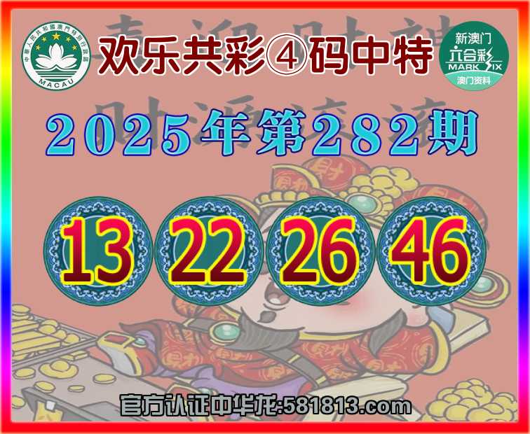 282期:【欢乐共彩】 🧧④码中特🧧【13.22.26.46】开:00准