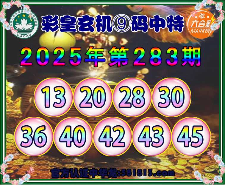 283期:【彩皇玄机】 🍗⑨码中特🍗开:45准上榜认证