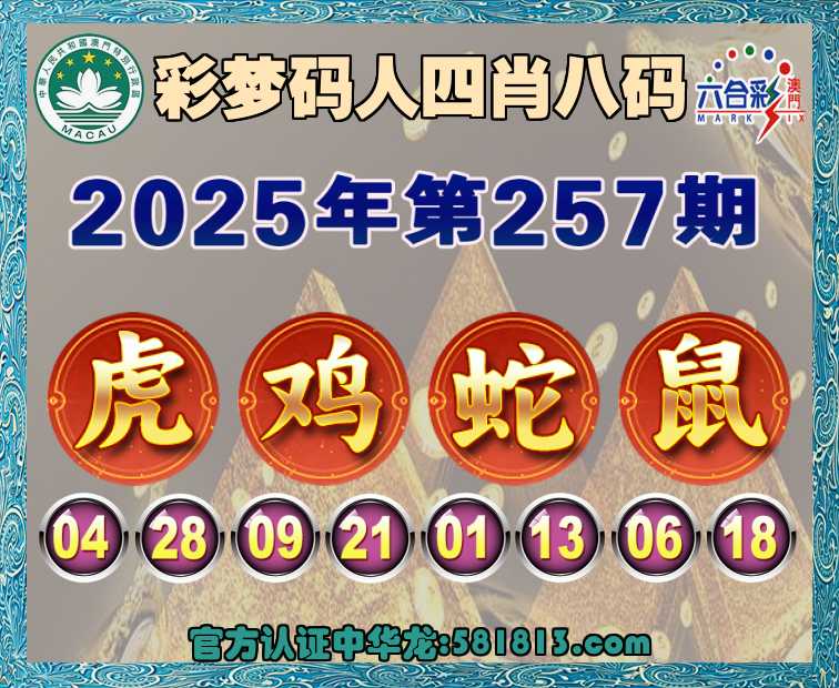 257期:《彩梦码人》 🍔四肖八码🍔【虎鸡蛇鼠】开:虎28准上榜认证