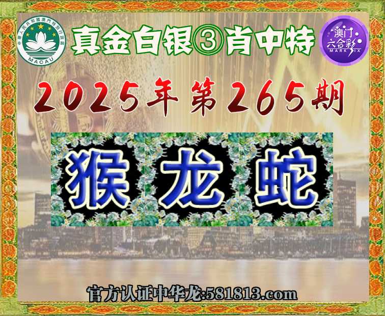 265期: 真金白银 🐓③肖中特🐓【猴.龙.蛇】开:猴10准