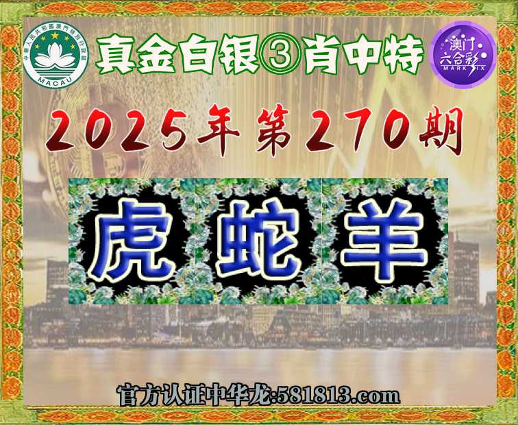 270期: 真金白银 🐓③肖中特🐓【虎.蛇.羊】开:羊35准