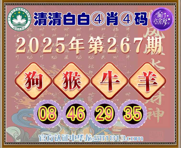 267期:【清清白白】 🍗④肖④码🍗【狗猴牛羊】【08.46.29.35】开:牛29准