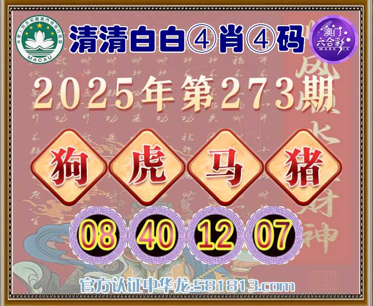 273期:【清清白白】 🍗④肖④码🍗【狗虎马猪】【08.40.12.07】开:虎04准