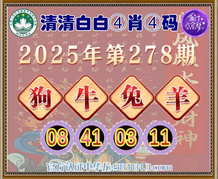 278期:【清清白白】 🍗④肖④码🍗【狗牛兔羊】【08.41.03.11】开:虎28错