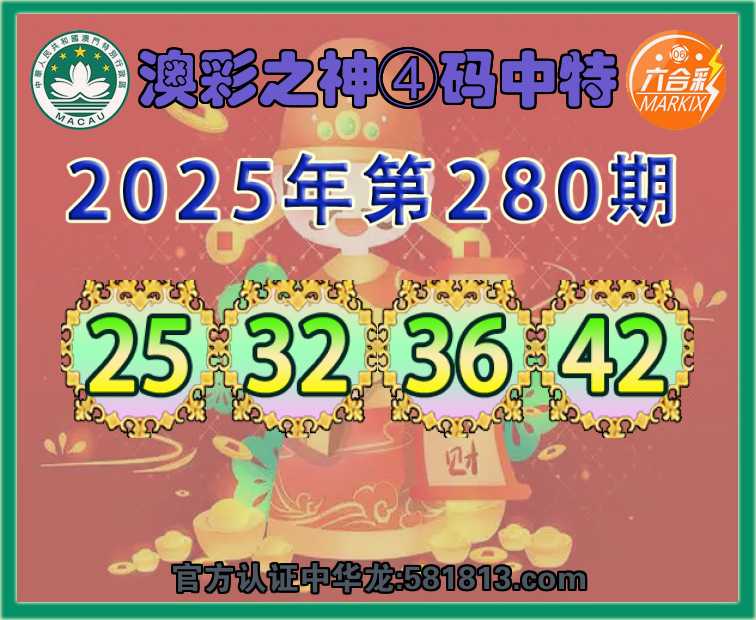 280期:【澳彩之神】 🐓④码中特🐓【25.32.36.42】开:00准