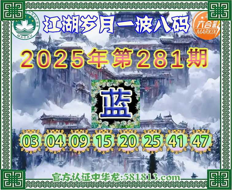281期:〖江湖岁月〗 🍗一波八码🍗【蓝波】开:00准
