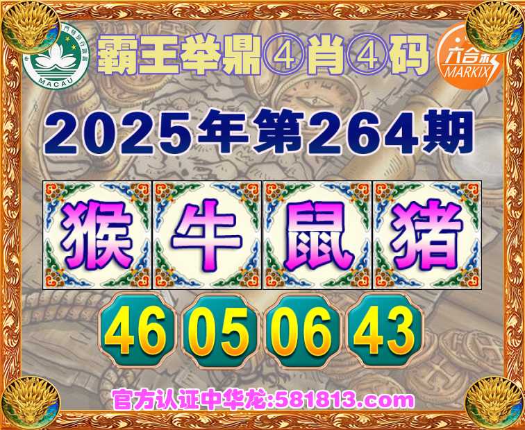264期:〖霸王举鼎〗 🎉④肖④码🎉【猴牛鼠猪】【46.05.06.43】开:猪43准