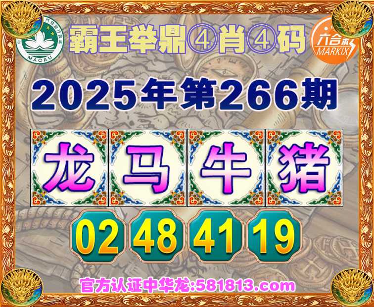 266期:〖霸王举鼎〗 🎉④肖④码🎉【龙马牛猪】【02.48.41.19】开:牛41准