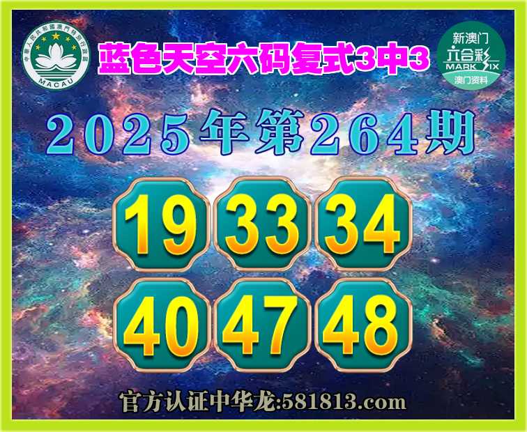 264期:『蓝色天空』 🪢六码复式3中3🪢