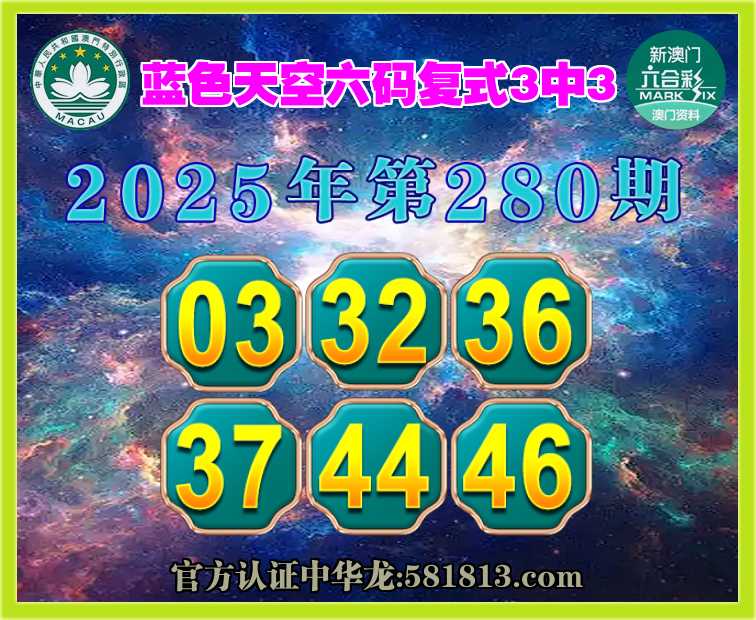 280期:『蓝色天空』 🪢六码复式3中3🪢