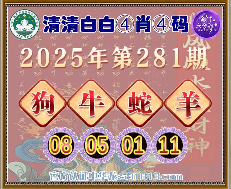 281期:【清清白白】 🍗④肖④码🍗【狗牛蛇羊】【08.05.01.11】开:00准