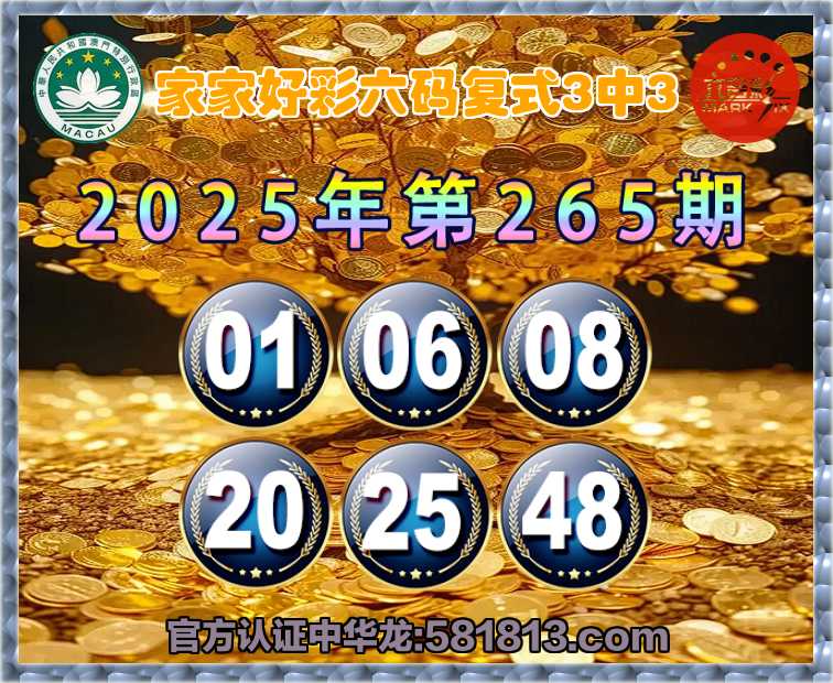 265期: 家家好彩 🍀六码复式3中3🍀
