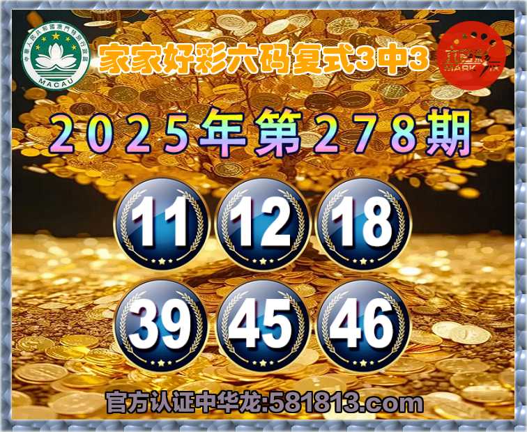 278期: 家家好彩 🍀六码复式3中3🍀