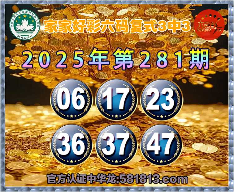 281期: 家家好彩 🍀六码复式3中3🍀