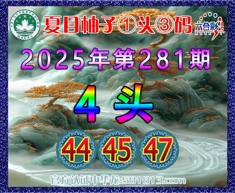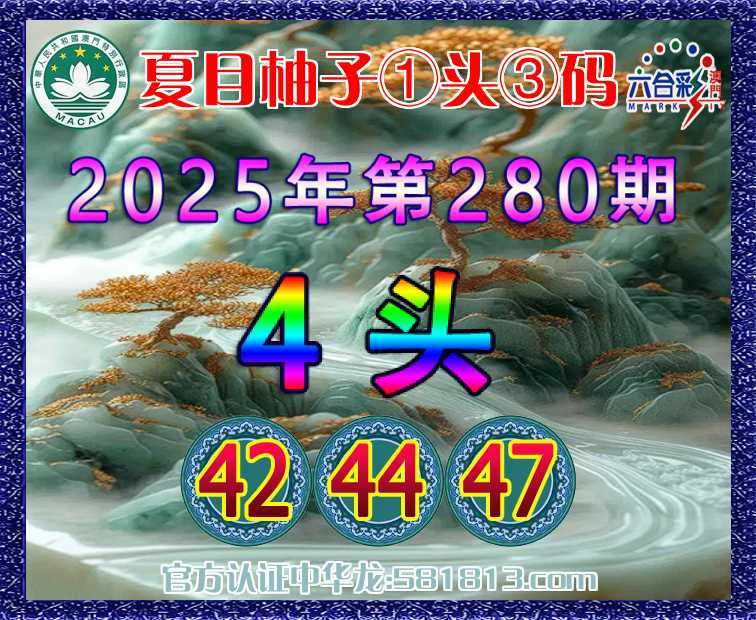 281期: 夏目柚子 ⚽①头③码⚽【4头主:44.45.47】开:羊47准上榜认证