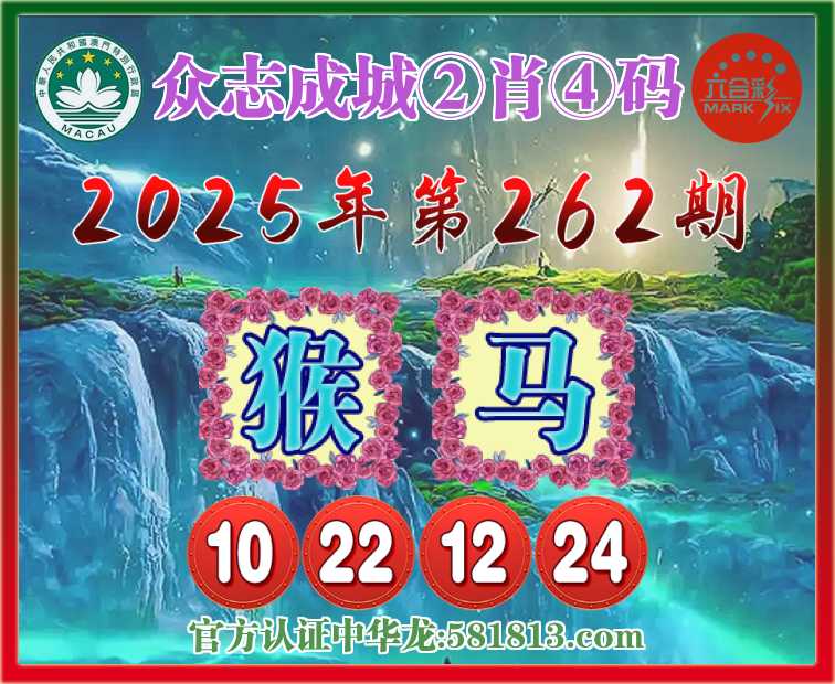 262期:『众志成城』 🐓②肖④码🐓【猴马】【10.22.12.24】开:狗44错