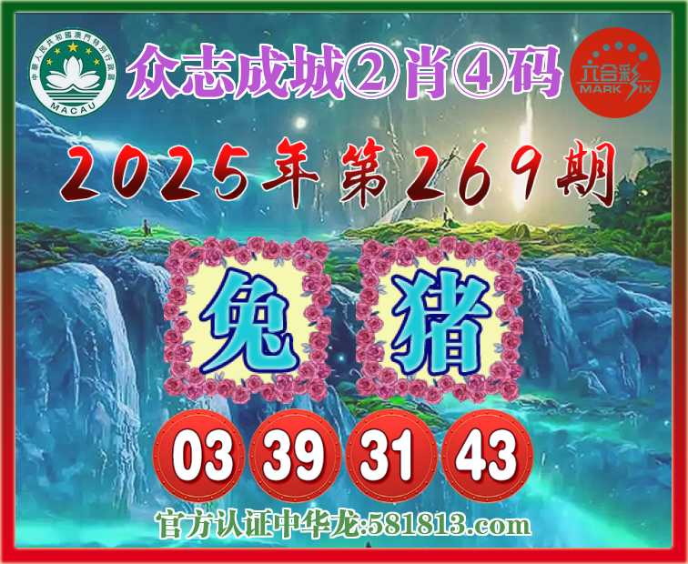 269期:『众志成城』 🐓②肖④码🐓【兔猪】【03.39.31.43】开:猪31准
