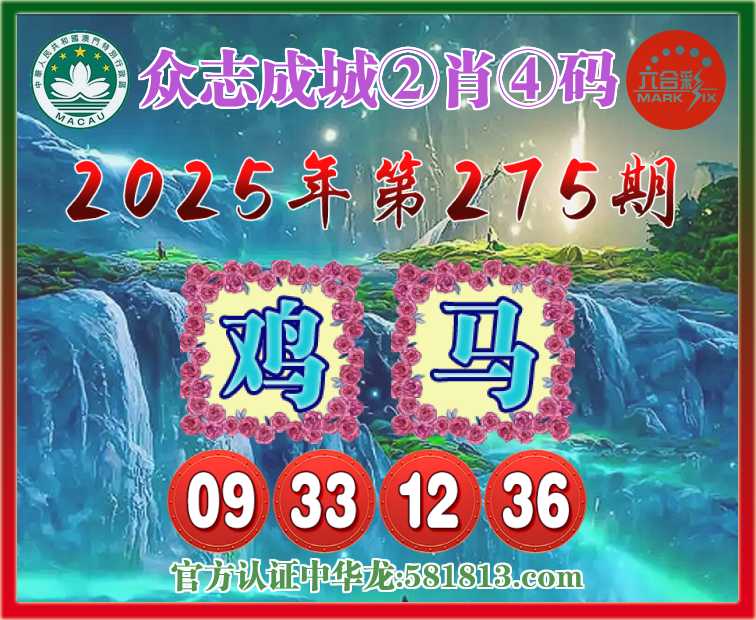 275期:『众志成城』 🐓②肖④码🐓【鸡马】【09.33.12.36】开:鸡45准上榜认证