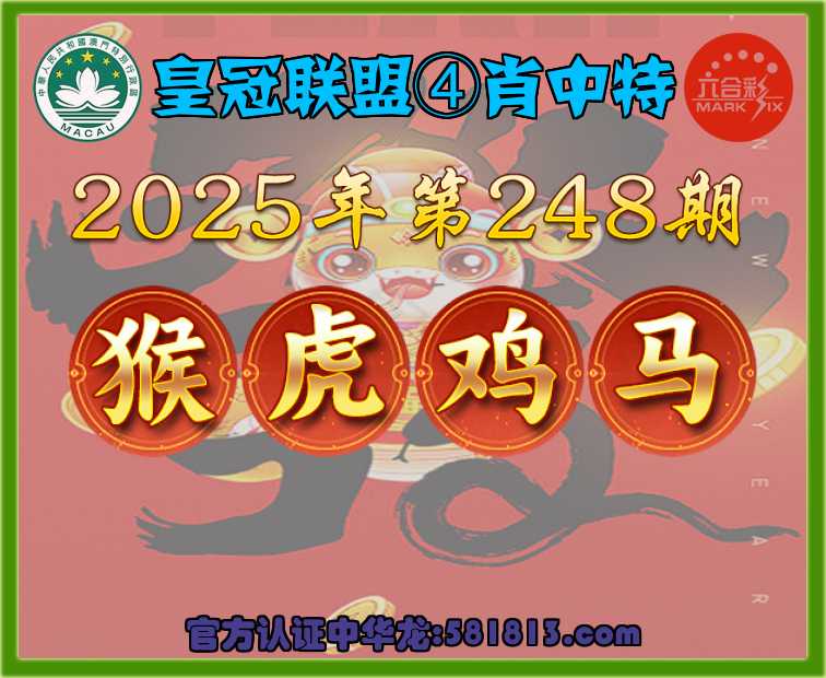248期:〖皇冠联盟〗 ✂️④肖中特✂️【猴.虎.鸡.马】开:马12准上榜认证