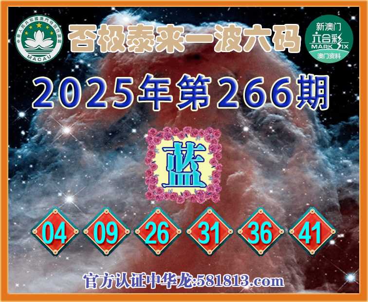 266期: 🏵️『否极泰来』 🏵️一波六码🏵️【蓝波】开:牛41准