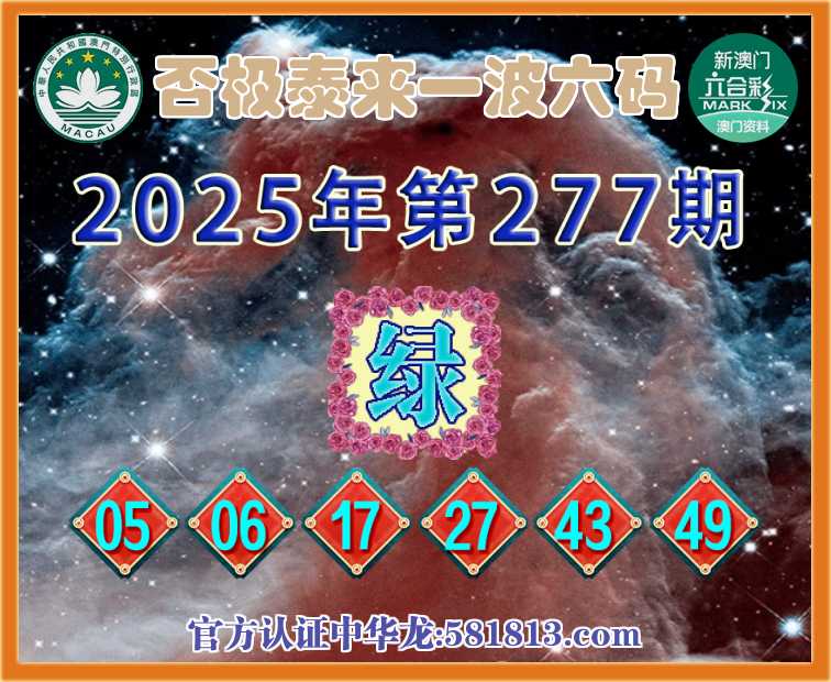 277期: 🏵️『否极泰来』 🏵️一波六码🏵️【绿波】开:虎16准上榜认证