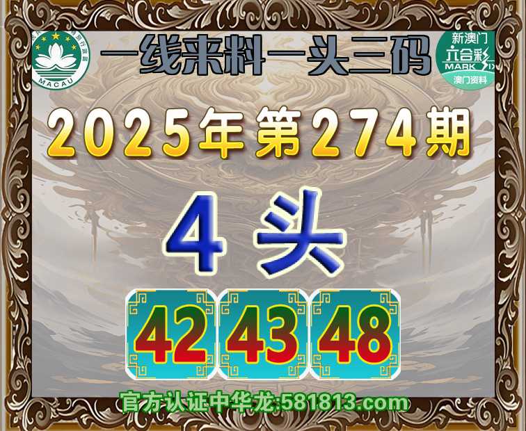 274期:《一线来料》 ☘️一头三码☘️【4头主:42.43.48】开:00准