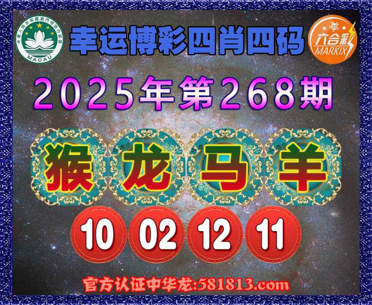 268期:〖幸运博彩〗 🏇四肖四码🏇【猴龙马羊】【10.02.12.11】开:猴10准