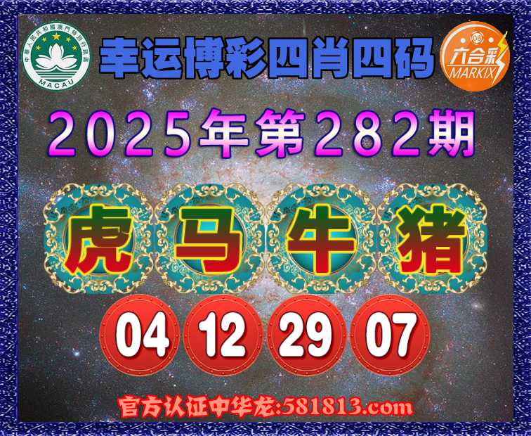 282期:〖幸运博彩〗 🏇四肖四码🏇【虎马牛猪】【04.12.29.07】开:牛41准