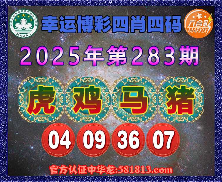 283期:〖幸运博彩〗 🏇四肖四码🏇【虎鸡马猪】【04.09.36.07】开:鸡45准上榜认证