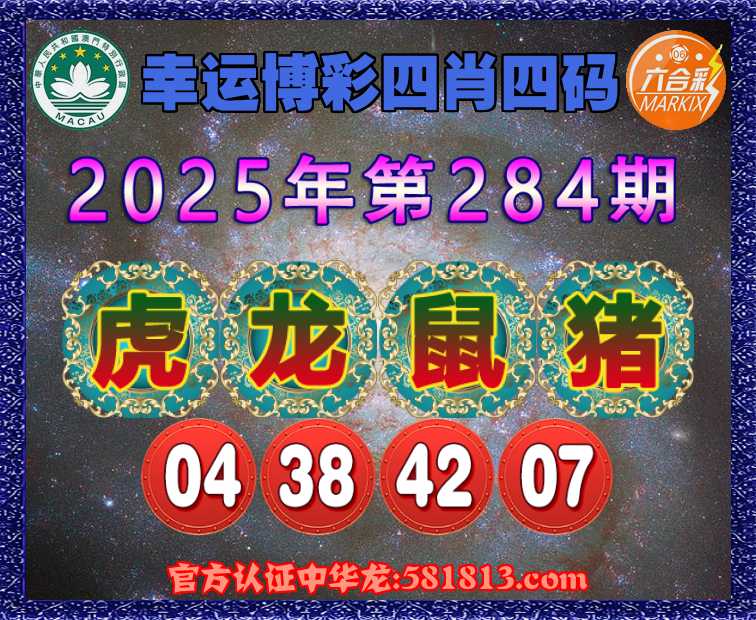 284期:〖幸运博彩〗 🏇四肖四码🏇【虎龙鼠猪】【04.38.42.07】开:牛41错