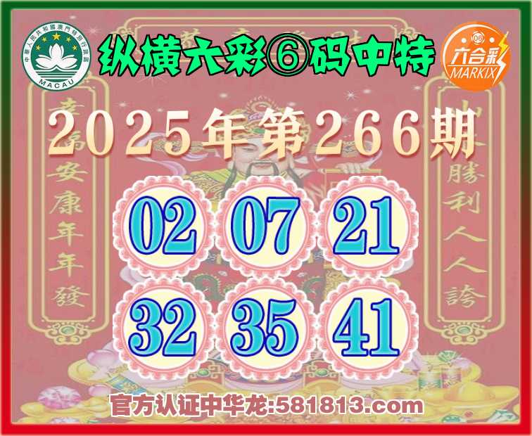 266期:《纵横六彩》 🩴⑥码中特🩴【02.07.21.32.35.41】开:41准