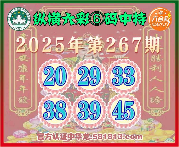 267期:《纵横六彩》 🩴⑥码中特🩴【20.29.33.38.39.45】开:29准