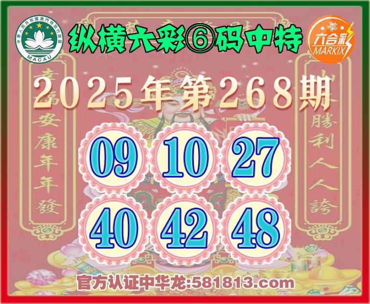 268期:《纵横六彩》 🩴⑥码中特🩴【09.10.27.40.42.48】开:10准