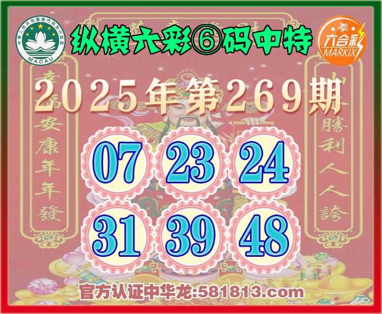 269期:《纵横六彩》 🩴⑥码中特🩴【07.23.24.31.39.48】开:31准