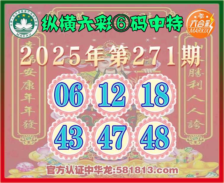 271期:《纵横六彩》 🩴⑥码中特🩴【06.12.18.43.47.48】开:06准
