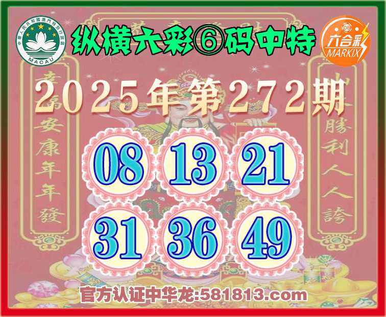 272期:《纵横六彩》 🩴⑥码中特🩴【08.13.21.31.36.49】开:36准