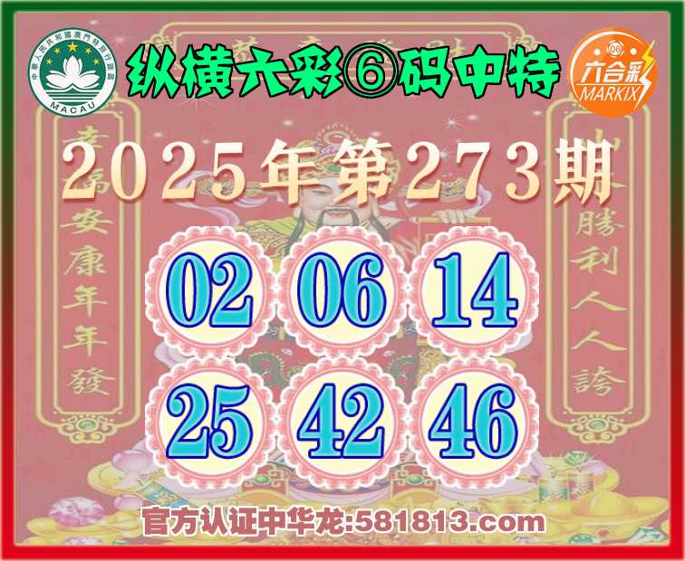 273期:《纵横六彩》 🩴⑥码中特🩴【02.06.14.25.42.46】开:04错