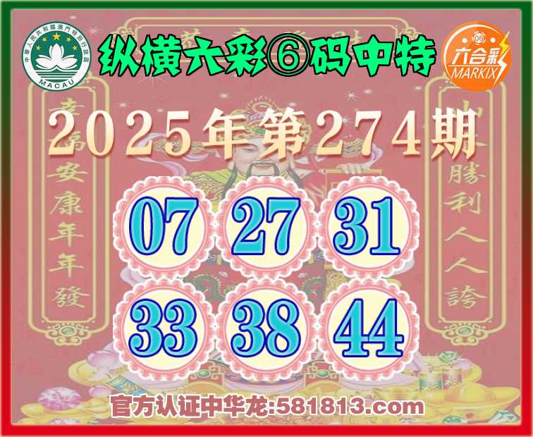 274期:《纵横六彩》 🩴⑥码中特🩴【07.27.31.33.38.44】开:44准