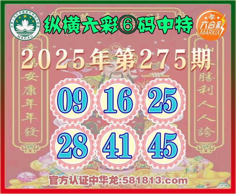 275期:《纵横六彩》 🩴⑥码中特🩴【09.16.25.28.41.45】开:45准