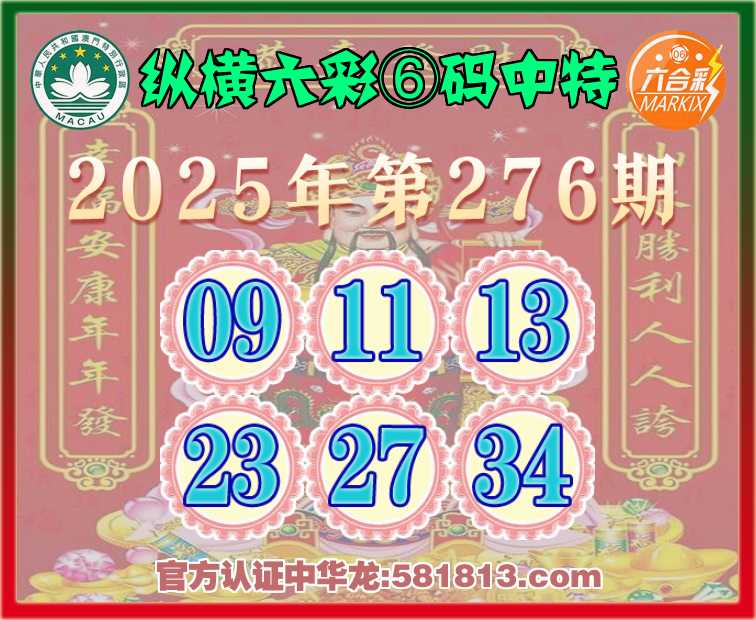 276期:《纵横六彩》 🩴⑥码中特🩴【09.11.13.23.27.34】开:09准