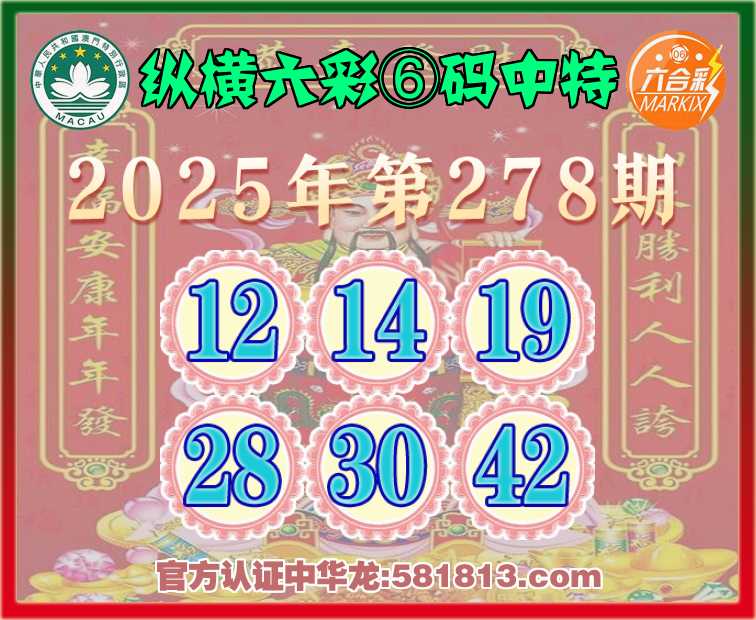 278期:《纵横六彩》 🩴⑥码中特🩴【12.14.19.28.30.42】开:28准