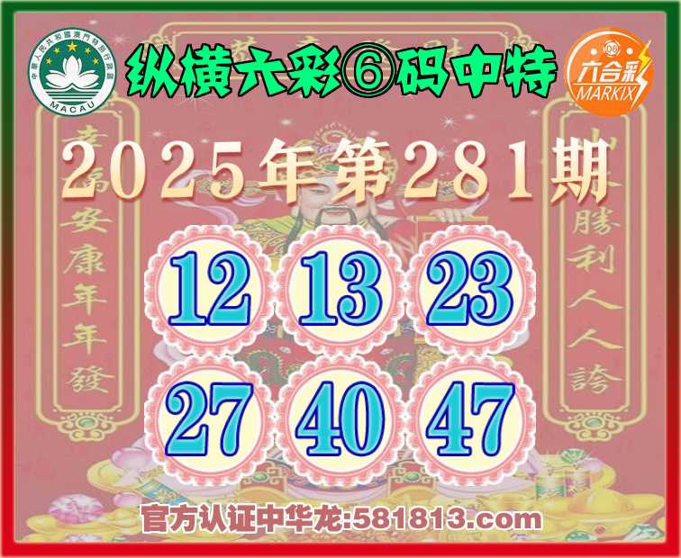 281期:《纵横六彩》 🩴⑥码中特🩴【12.13.23.27.40.47】开:47准